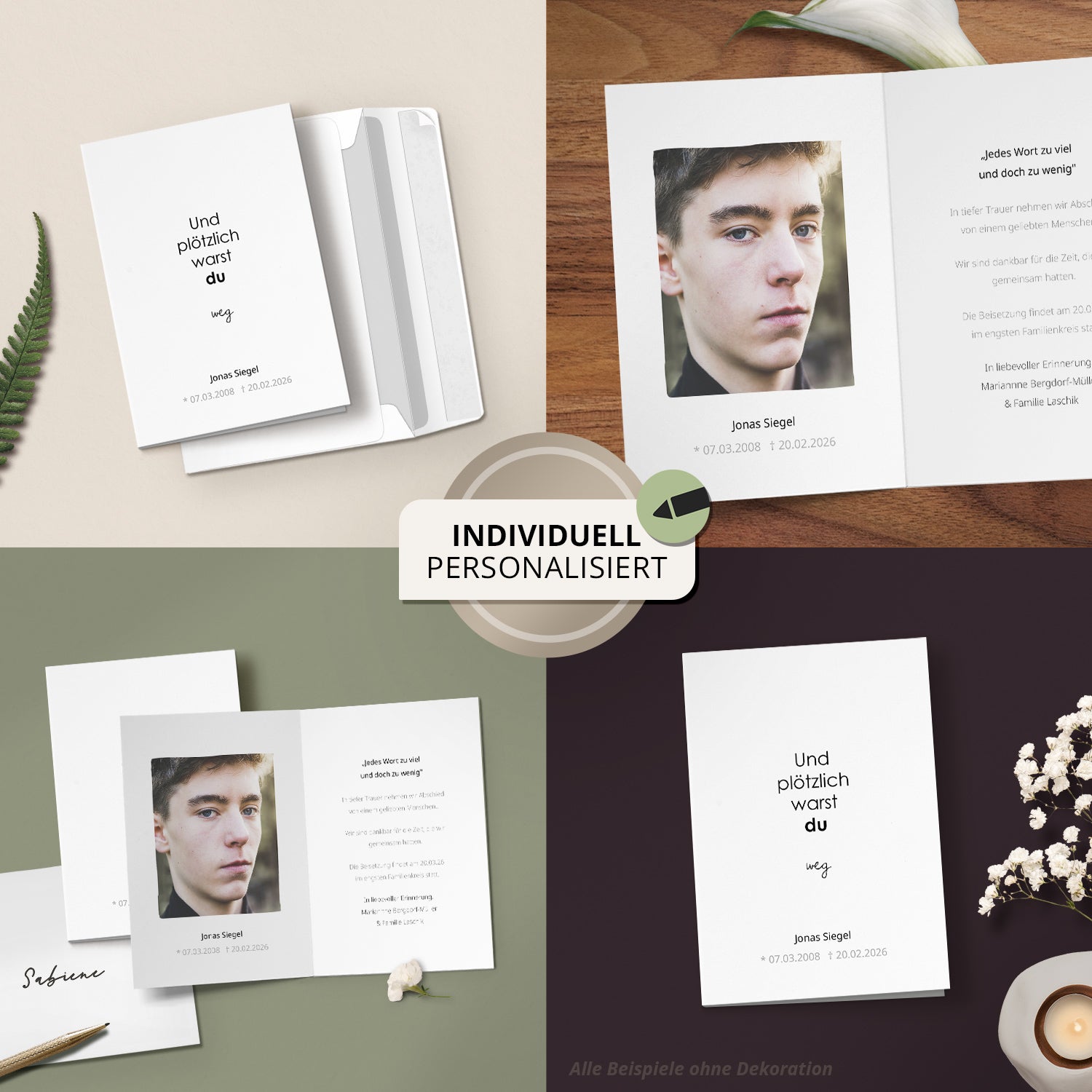 - Trauerkarte / Traueranzeige im vorgestalteten Design, einfach anpassbar