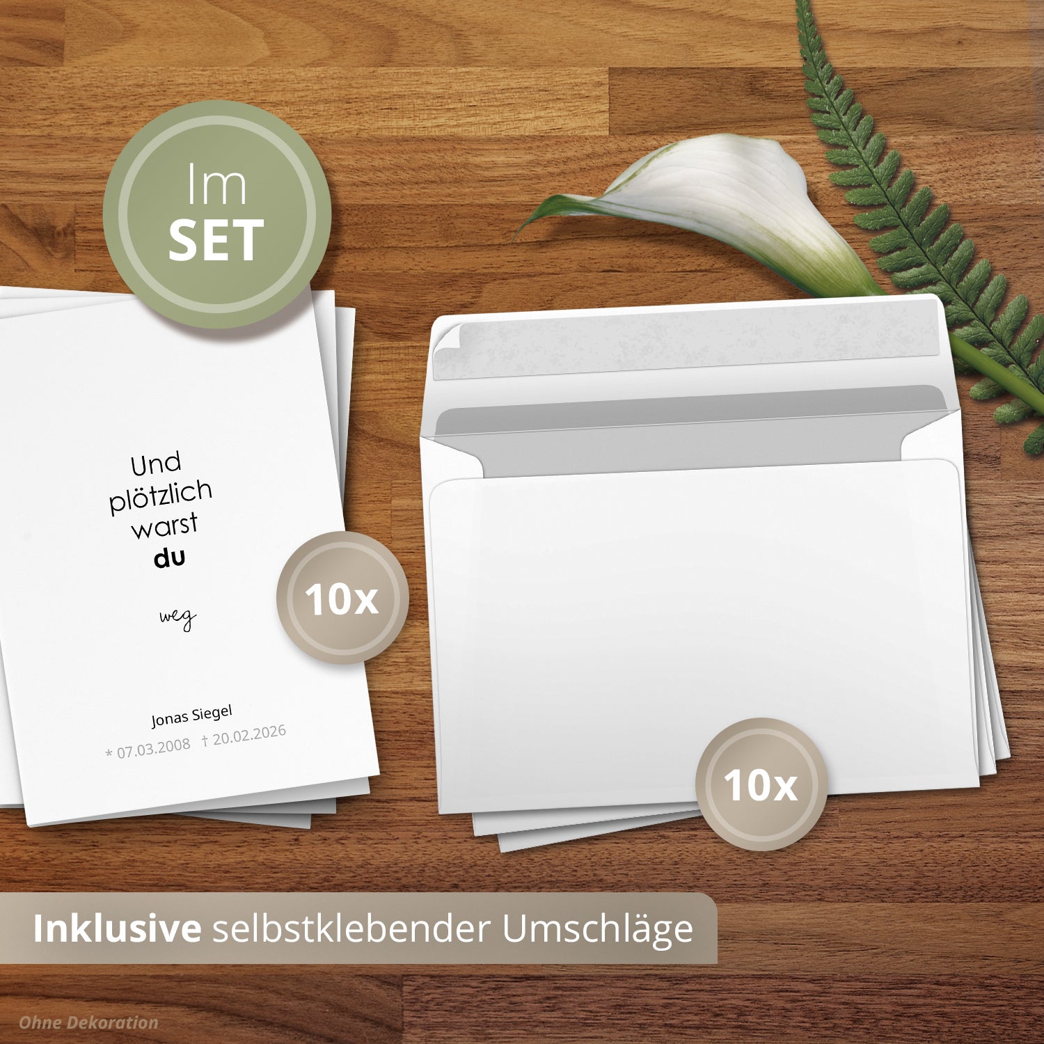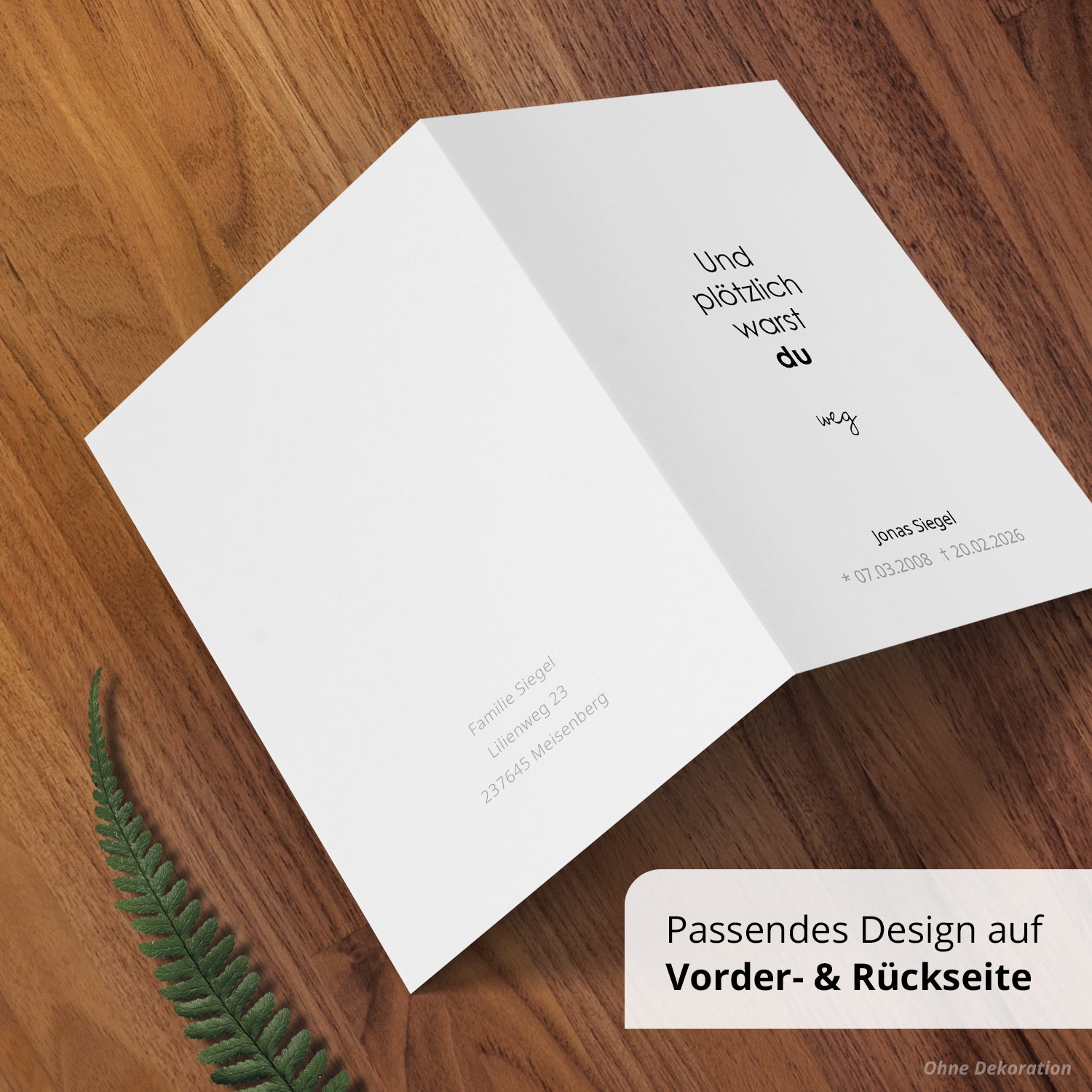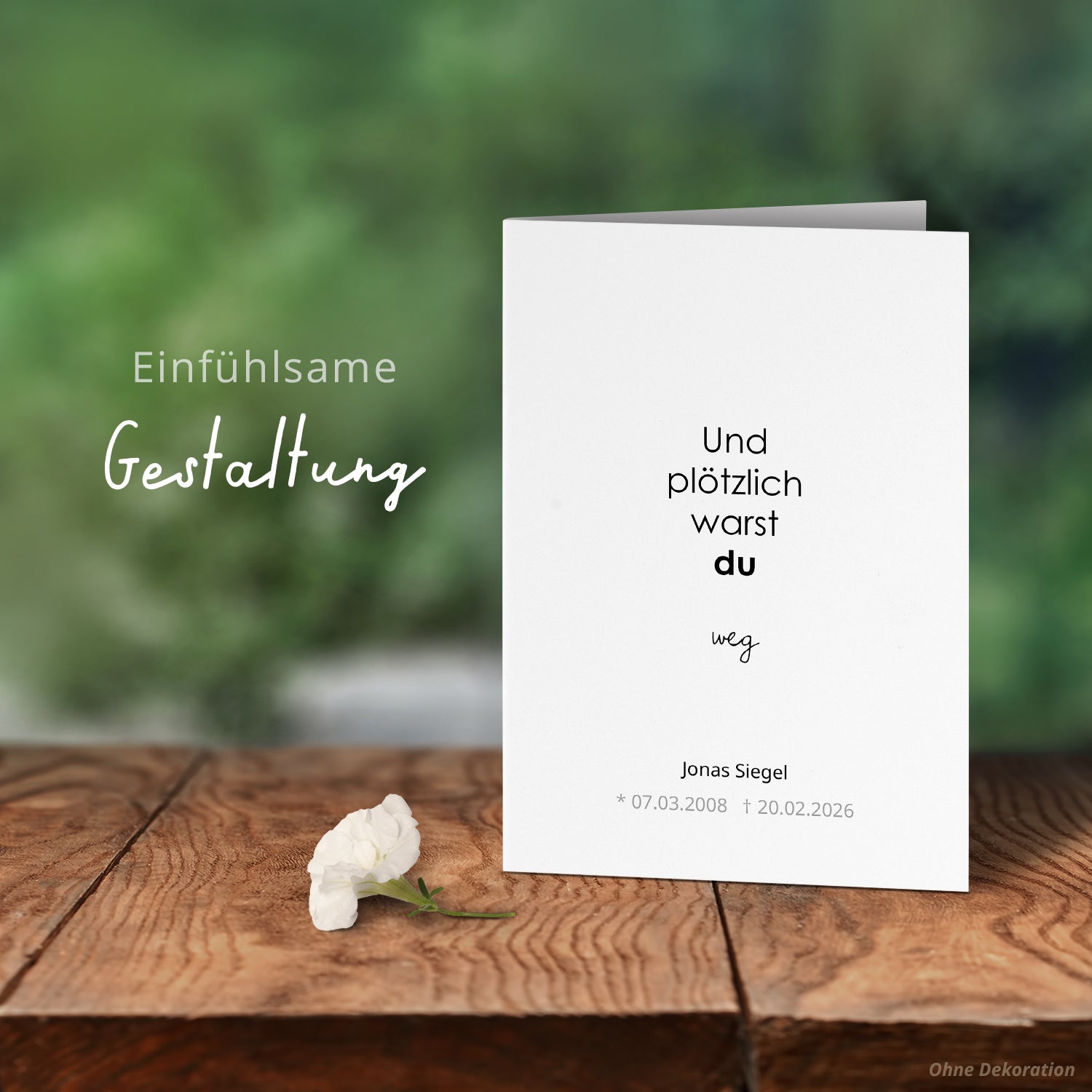 - Klappkarte zur Bekanntmachung / Einladung zur Trauerfeier mit Druck auf Vorder- und Rückseite